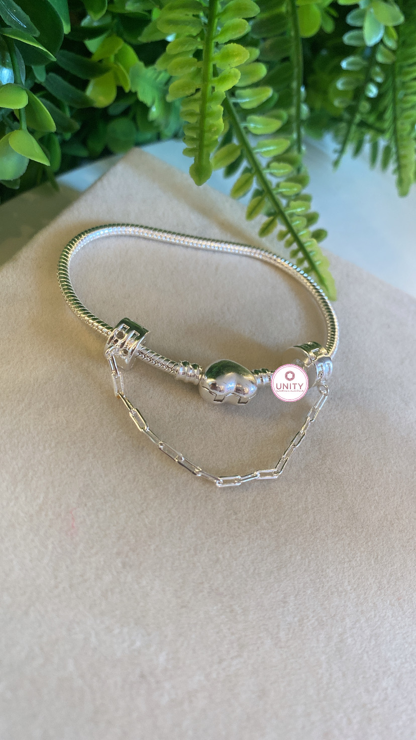 Produzida em prata 925 legítima ou aço polido de alta resistência, é durável e bonita como o resto da sua pulseira.